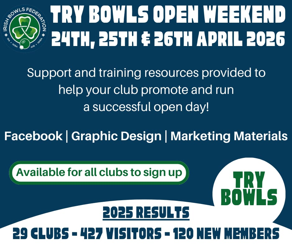 NEW CLUB MEMBERS? Your club can choose to hold your open day on either: Friday 24th, Saturday 25th or Sunday 26th April. To register and receive some help and advice please contact: Chris@irishbowlsfederation.co.uk or...
